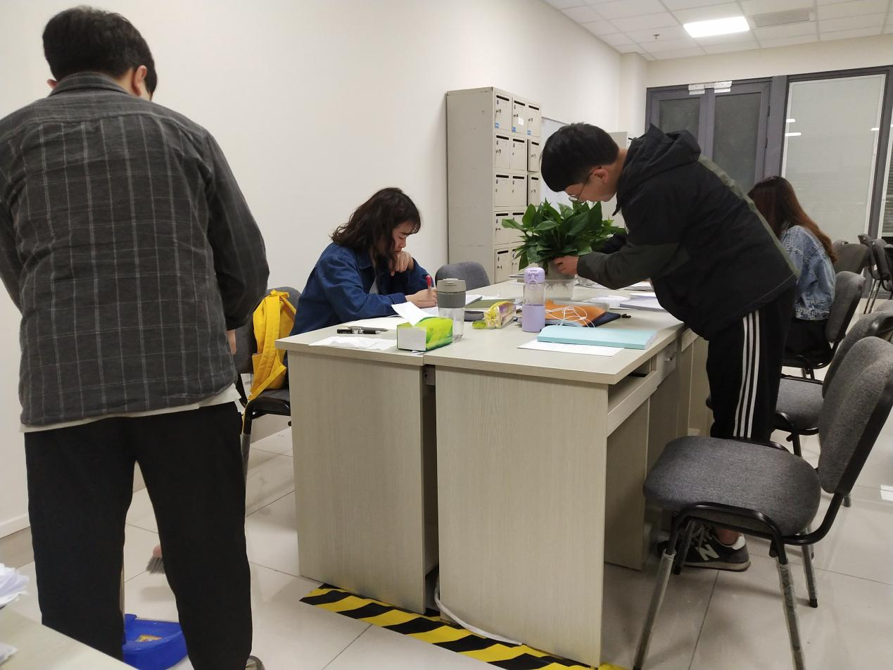 2021年4月5日起至6月15日,2020级研究生党支部开展“结合工作办实事”项目,主要形式为正式党员带动积极分子对研习室进行卫生清扫,以为同学们营造良好的学习环境。